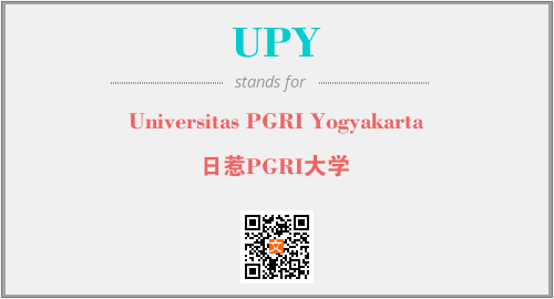 英文缩略词“UPY”经常作为“Universitas PGRI Yogyakarta”的英文缩写来使用,中文表示:“日惹PGRI大学”。本文将详细介绍英文缩写词UPY所代表英文单词,其对应的中文拼音、详细解释以及在英语中的流行度。此外,还有关于缩略词UPY的分类、应用领域及相关应用示例等。