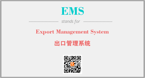 英文缩略词“EMS”经常作为“Export Management System”的英文缩写来使用,中文表示:“出口管理系统”。本文将详细介绍英文缩写词EMS所代表英文单词,其对应的中文拼音、详细解释以及在英语中的流行度。此外,还有关于缩略词EMS的分类、应用领域及相关应用示例等。
