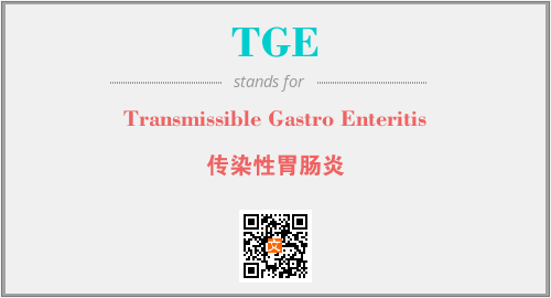 英文缩略词“TGE”经常作为“Transmissible Gastro Enteritis”的英文缩写来使用,中文表示:“传染性胃肠炎”。本文将详细介绍英文缩写词TGE所代表英文单词,其对应的中文拼音、详细解释以及在英语中的流行度。此外,还有关于缩略词TGE的分类、应用领域及相关应用示例等。