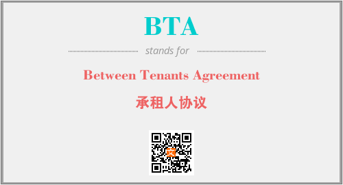 上述内容是“Between Tenants Agreement”作为“BTA”的缩写,解释为“承租人协议”时的信息,以及英文缩略词BTA所代表的英文单词,其对应的中文拼音、详细解释以及在英文中的流行度和相关分类、应用领域及应用示例等。