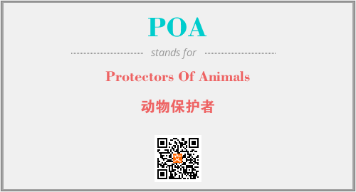 上述内容是“Protectors Of Animals”作为“POA”的缩写,解释为“动物保护者”时的信息,以及英文缩略词POA所代表的英文单词,其对应的中文拼音、详细解释以及在英文中的流行度和相关分类、应用领域及应用示例等。