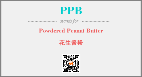 以上为Powdered Peanut Butter英文缩略词PPB的中文解释,以及该英文缩写在英语的流行度、分类和应用领域方面的信息。