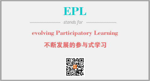 上述内容是“evolving Participatory Learning”作为“EPL”的缩写,解释为“不断发展的参与式学习”时的信息,以及英文缩略词EPL所代表的英文单词,其对应的中文拼音、详细解释以及在英文中的流行度和相关分类、应用领域及应用示例等。