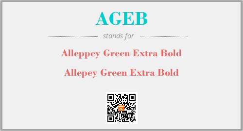 上述内容是“Alleppey Green Extra Bold”作为“AGEB”的缩写,解释为“Allepey Green Extra Bold”时的信息,以及英文缩略词AGEB所代表的英文单词,其对应的中文拼音、详细解释以及在英文中的流行度和相关分类、应用领域及应用示例等。
