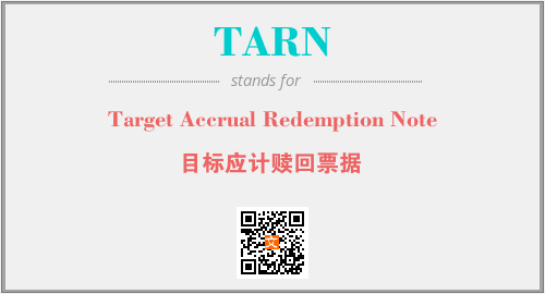 英文缩略词“TARN”经常作为“Target Accrual Redemption Note”的英文缩写来使用,中文表示:“目标应计赎回票据”。本文将详细介绍英文缩写词TARN所代表英文单词,其对应的中文拼音、详细解释以及在英语中的流行度。此外,还有关于缩略词TARN的分类、应用领域及相关应用示例等。