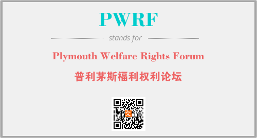 上述内容是“Plymouth Welfare Rights Forum”作为“PWRF”的缩写,解释为“普利茅斯福利权利论坛”时的信息,以及英文缩略词PWRF所代表的英文单词,其对应的中文拼音、详细解释以及在英文中的流行度和相关分类、应用领域及应用示例等。