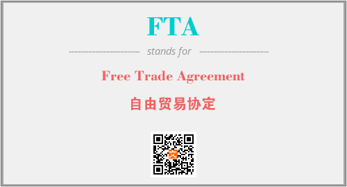 上述内容是“Free Trade Agreement”作为“FTA”的缩写,解释为“自由贸易协定”时的信息,以及英文缩略词FTA所代表的英文单词,其对应的中文拼音、详细解释以及在英文中的流行度和相关分类、应用领域及应用示例等。