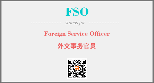 英文缩略词“FSO”经常作为“Foreign Service Officer”的英文缩写来使用,中文表示:“外交事务官员”。本文将详细介绍英文缩写词FSO所代表英文单词,其对应的中文拼音、详细解释以及在英语中的流行度。此外,还有关于缩略词FSO的分类、应用领域及相关应用示例等。