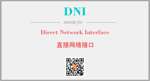 上述内容是“Direct Network Interface”作为“DNI”的缩写,解释为“直接网络接口”时的信息,以及英文缩略词DNI所代表的英文单词,其对应的中文拼音、详细解释以及在英文中的流行度和相关分类、应用领域及应用示例等。