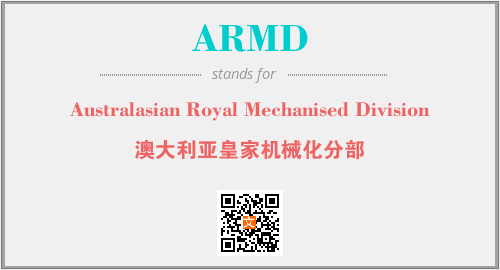 英文缩略词“ARMD”经常作为“Australasian Royal Mechanised Division”的英文缩写来使用,中文表示:“澳大利亚皇家机械化分部”。本文将详细介绍英文缩写词ARMD所代表英文单词,其对应的中文拼音、详细解释以及在英语中的流行度。此外,还有关于缩略词ARMD的分类、应用领域及相关应用示例等。