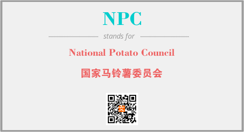 英文缩略词“NPC”经常作为“National Potato Council”的英文缩写来使用,中文表示:“国家马铃薯委员会”。本文将详细介绍英文缩写词NPC所代表英文单词,其对应的中文拼音、详细解释以及在英语中的流行度。此外,还有关于缩略词NPC的分类、应用领域及相关应用示例等。