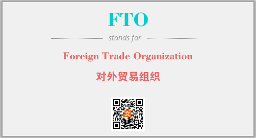 英文缩略词“FTO”经常作为“Foreign Trade Organization”的英文缩写来使用,中文表示:“对外贸易组织”。本文将详细介绍英文缩写词FTO所代表英文单词,其对应的中文拼音、详细解释以及在英语中的流行度。此外,还有关于缩略词FTO的分类、应用领域及相关应用示例等。