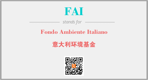 英文缩略词“FAI”经常作为“Fondo Ambiente Italiano”的英文缩写来使用,中文表示:“意大利环境基金”。本文将详细介绍英文缩写词FAI所代表英文单词,其对应的中文拼音、详细解释以及在英语中的流行度。此外,还有关于缩略词FAI的分类、应用领域及相关应用示例等。