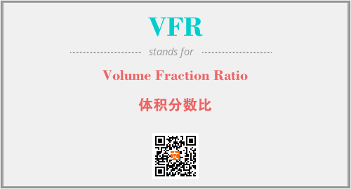 上述内容是“Volume Fraction Ratio”作为“VFR”的缩写,解释为“体积分数比”时的信息,以及英文缩略词VFR所代表的英文单词,其对应的中文拼音、详细解释以及在英文中的流行度和相关分类、应用领域及应用示例等。