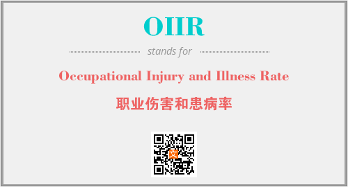 英文缩略词“OIIR”经常作为“Occupational Injury and Illness Rate”的英文缩写来使用,中文表示:“职业伤害和患病率”。本文将详细介绍英文缩写词OIIR所代表英文单词,其对应的中文拼音、详细解释以及在英语中的流行度。此外,还有关于缩略词OIIR的分类、应用领域及相关应用示例等。