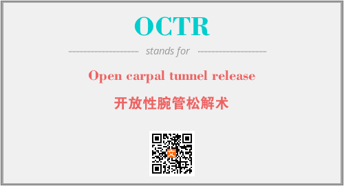 英文缩略词“OCTR”经常作为“Open carpal tunnel release”的英文缩写来使用,中文表示:“开放性腕管松解术”。本文将详细介绍英文缩写词OCTR所代表英文单词,其对应的中文拼音、详细解释以及在英语中的流行度。此外,还有关于缩略词OCTR的分类、应用领域及相关应用示例等。