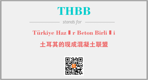 上述内容是“Türkiye Hazır Beton Birliği”作为“THBB”的缩写,解释为“土耳其的现成混凝土联盟”时的信息,以及英文缩略词THBB所代表的英文单词,其对应的中文拼音、详细解释以及在英文中的流行度和相关分类、应用领域及应用示例等。