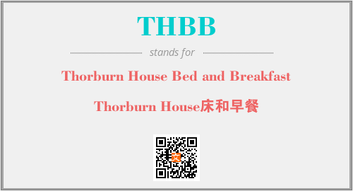 上述内容是“Thorburn House Bed and Breakfast”作为“THBB”的缩写,解释为“Thorburn House床和早餐”时的信息,以及英文缩略词THBB所代表的英文单词,其对应的中文拼音、详细解释以及在英文中的流行度和相关分类、应用领域及应用示例等。