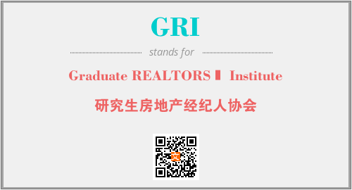 英文缩略词“GRI”经常作为“Graduate REALTORS® Institute”的英文缩写来使用,中文表示:“研究生房地产经纪人协会”。本文将详细介绍英文缩写词GRI所代表英文单词,其对应的中文拼音、详细解释以及在英语中的流行度。此外,还有关于缩略词GRI的分类、应用领域及相关应用示例等。