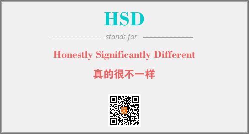 上述内容是“Honestly Significantly Different”作为“HSD”的缩写,解释为“真的很不一样”时的信息,以及英文缩略词HSD所代表的英文单词,其对应的中文拼音、详细解释以及在英文中的流行度和相关分类、应用领域及应用示例等。