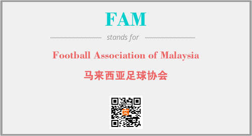 上述内容是“Football Association of Malaysia”作为“FAM”的缩写,解释为“马来西亚足球协会”时的信息,以及英文缩略词FAM所代表的英文单词,其对应的中文拼音、详细解释以及在英文中的流行度和相关分类、应用领域及应用示例等。