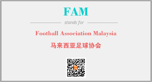 上述内容是“Football Association Malaysia”作为“FAM”的缩写,解释为“马来西亚足球协会”时的信息,以及英文缩略词FAM所代表的英文单词,其对应的中文拼音、详细解释以及在英文中的流行度和相关分类、应用领域及应用示例等。