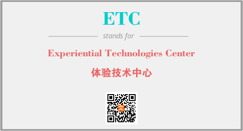 以上为Experiential Technologies Center英文缩略词ETC的中文解释,以及该英文缩写在英语的流行度、分类和应用领域方面的信息。