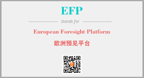 上述内容是“European Foresight Platform”作为“EFP”的缩写,解释为“欧洲预见平台”时的信息,以及英文缩略词EFP所代表的英文单词,其对应的中文拼音、详细解释以及在英文中的流行度和相关分类、应用领域及应用示例等。