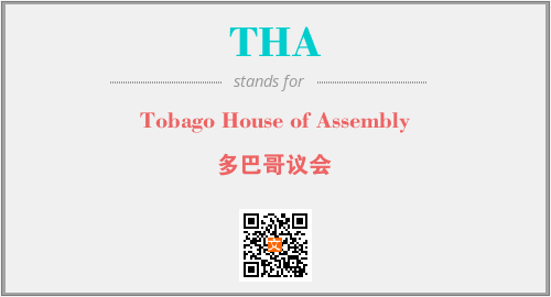 上述内容是“Tobago House of Assembly”作为“THA”的缩写,解释为“多巴哥议会”时的信息,以及英文缩略词THA所代表的英文单词,其对应的中文拼音、详细解释以及在英文中的流行度和相关分类、应用领域及应用示例等。