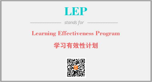 以上为Learning Effectiveness Program英文缩略词LEP的中文解释,以及该英文缩写在英语的流行度、分类和应用领域方面的信息。
