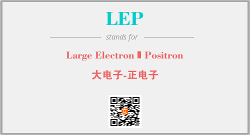 英文缩略词“LEP”经常作为“Large Electron–Positron”的英文缩写来使用,中文表示:“大电子-正电子”。本文将详细介绍英文缩写词LEP所代表英文单词,其对应的中文拼音、详细解释以及在英语中的流行度。此外,还有关于缩略词LEP的分类、应用领域及相关应用示例等。