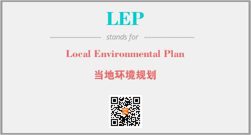 英文缩略词“LEP”经常作为“Local Environmental Plan”的英文缩写来使用,中文表示:“当地环境规划”。本文将详细介绍英文缩写词LEP所代表英文单词,其对应的中文拼音、详细解释以及在英语中的流行度。此外,还有关于缩略词LEP的分类、应用领域及相关应用示例等。