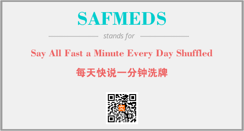 上述内容是“Say All Fast a Minute Every Day Shuffled”作为“SAFMEDS”的缩写,解释为“每天快说一分钟洗牌”时的信息,以及英文缩略词SAFMEDS所代表的英文单词,其对应的中文拼音、详细解释以及在英文中的流行度和相关分类、应用领域及应用示例等。