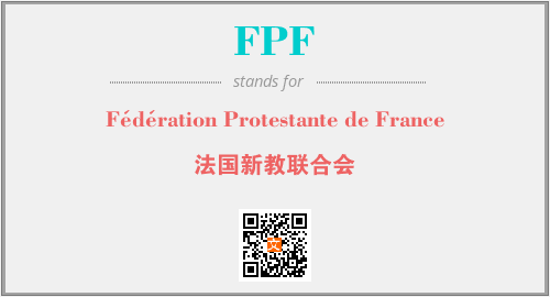 上述内容是“Fédération Protestante de France”作为“FPF”的缩写,解释为“法国新教联合会”时的信息,以及英文缩略词FPF所代表的英文单词,其对应的中文拼音、详细解释以及在英文中的流行度和相关分类、应用领域及应用示例等。