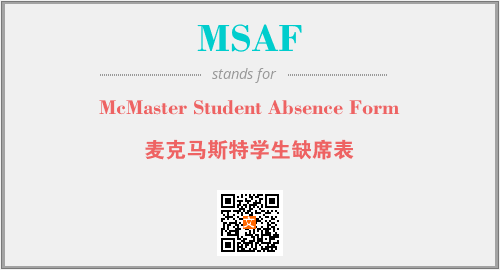 上述内容是“McMaster Student Absence Form”作为“MSAF”的缩写,解释为“麦克马斯特学生缺席表”时的信息,以及英文缩略词MSAF所代表的英文单词,其对应的中文拼音、详细解释以及在英文中的流行度和相关分类、应用领域及应用示例等。