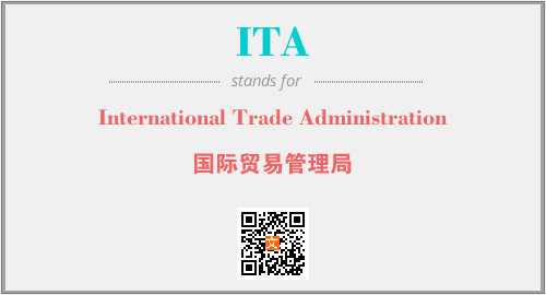 英文缩略词“ITA”经常作为“International Trade Administration”的英文缩写来使用,中文表示:“国际贸易管理局”。本文将详细介绍英文缩写词ITA所代表英文单词,其对应的中文拼音、详细解释以及在英语中的流行度。此外,还有关于缩略词ITA的分类、应用领域及相关应用示例等。
