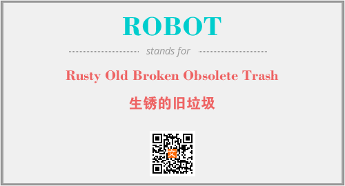 英文缩略词“ROBOT”经常作为“Rusty Old Broken Obsolete Trash”的英文缩写来使用,中文表示:“生锈的旧垃圾”。本文将详细介绍英文缩写词ROBOT所代表英文单词,其对应的中文拼音、详细解释以及在英语中的流行度。此外,还有关于缩略词ROBOT的分类、应用领域及相关应用示例等。