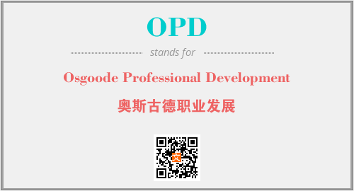 上述内容是“Osgoode Professional Development”作为“OPD”的缩写,解释为“奥斯古德职业发展”时的信息,以及英文缩略词OPD所代表的英文单词,其对应的中文拼音、详细解释以及在英文中的流行度和相关分类、应用领域及应用示例等。