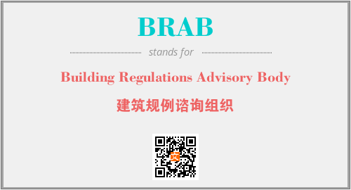 上述内容是“Building Regulations Advisory Body”作为“BRAB”的缩写,解释为“建筑规例谘询组织”时的信息,以及英文缩略词BRAB所代表的英文单词,其对应的中文拼音、详细解释以及在英文中的流行度和相关分类、应用领域及应用示例等。