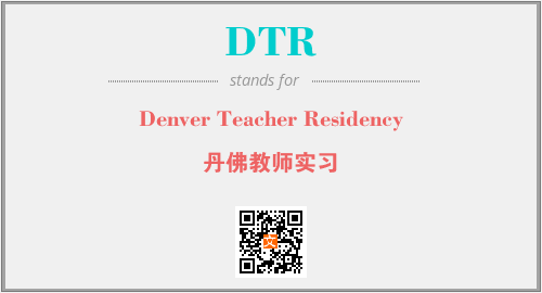 上述内容是“Denver Teacher Residency”作为“DTR”的缩写,解释为“丹佛教师实习”时的信息,以及英文缩略词DTR所代表的英文单词,其对应的中文拼音、详细解释以及在英文中的流行度和相关分类、应用领域及应用示例等。
