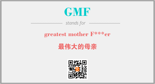 上述内容是“greatest mother F***er”作为“GMF”的缩写,解释为“最伟大的母亲”时的信息,以及英文缩略词GMF所代表的英文单词,其对应的中文拼音、详细解释以及在英文中的流行度和相关分类、应用领域及应用示例等。