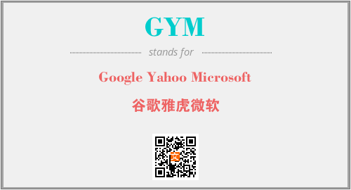 上述内容是“Google Yahoo Microsoft”作为“GYM”的缩写,解释为“谷歌雅虎微软”时的信息,以及英文缩略词GYM所代表的英文单词,其对应的中文拼音、详细解释以及在英文中的流行度和相关分类、应用领域及应用示例等。
