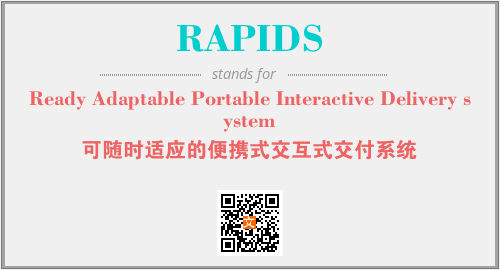 以上为Ready Adaptable Portable Interactive Delivery system英文缩略词RAPIDS的中文解释,以及该英文缩写在英语的流行度、分类和应用领域方面的信息。