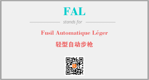 英文缩略词“FAL”经常作为“Fusil Automatique Léger”的英文缩写来使用,中文表示:“轻型自动步枪”。本文将详细介绍英文缩写词FAL所代表英文单词,其对应的中文拼音、详细解释以及在英语中的流行度。此外,还有关于缩略词FAL的分类、应用领域及相关应用示例等。
