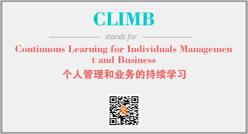 以上为Continuous Learning for Individuals Management and Business英文缩略词CLIMB的中文解释,以及该英文缩写在英语的流行度、分类和应用领域方面的信息。