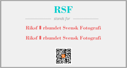 上述内容是“Riksförbundet Svensk Fotografi”作为“RSF”的缩写,解释为“Riksförbundet Svensk Fotografi”时的信息,以及英文缩略词RSF所代表的英文单词,其对应的中文拼音、详细解释以及在英文中的流行度和相关分类、应用领域及应用示例等。
