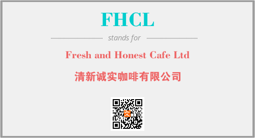 上述内容是“Fresh and Honest Cafe Ltd”作为“FHCL”的缩写,解释为“清新诚实咖啡有限公司”时的信息,以及英文缩略词FHCL所代表的英文单词,其对应的中文拼音、详细解释以及在英文中的流行度和相关分类、应用领域及应用示例等。
