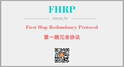 上述内容是“First Hop Redundancy Protocol”作为“FHRP”的缩写,解释为“第一跳冗余协议”时的信息,以及英文缩略词FHRP所代表的英文单词,其对应的中文拼音、详细解释以及在英文中的流行度和相关分类、应用领域及应用示例等。