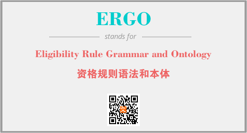 上述内容是“Eligibility Rule Grammar and Ontology”作为“ERGO”的缩写,解释为“资格规则语法和本体”时的信息,以及英文缩略词ERGO所代表的英文单词,其对应的中文拼音、详细解释以及在英文中的流行度和相关分类、应用领域及应用示例等。