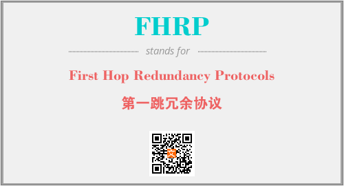 上述内容是“First Hop Redundancy Protocols”作为“FHRP”的缩写,解释为“第一跳冗余协议”时的信息,以及英文缩略词FHRP所代表的英文单词,其对应的中文拼音、详细解释以及在英文中的流行度和相关分类、应用领域及应用示例等。